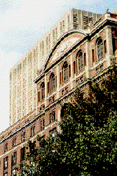 ![]() Under the spur of PWA and WPA grants, added to city appropriations, the old Bellevue, with its maze of mid-Victorian buildings of ominous gray, has given.place to the group of eight-story structures of brick and stone with granite foundations. The firm of McKim, Mead, and White designed these new buildings with the exception of the Psychiatric Hospital; the architects of the latter were C. B. Meyers and Thompson, Holmes, and Converse. In February, 1938, the C & D Building was opened as a model unit for the treatment of pulmonary diseases. When the new Administration Building is erected, it will complete the group of seven great units making up the new Bellevue.